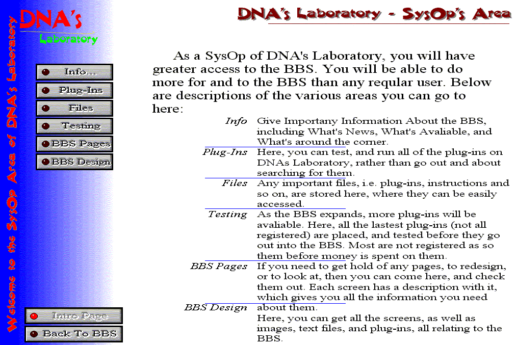 With section section that you can view, you are show a small picture of what each section looks like. If you want a more details view of what the look like, then click on the links below. There are also extra screens, so you can see a bit more of the BBS...